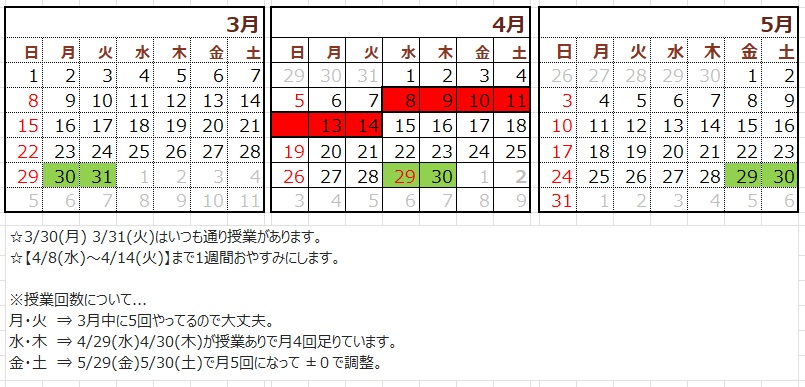 春お休みのお知らせ